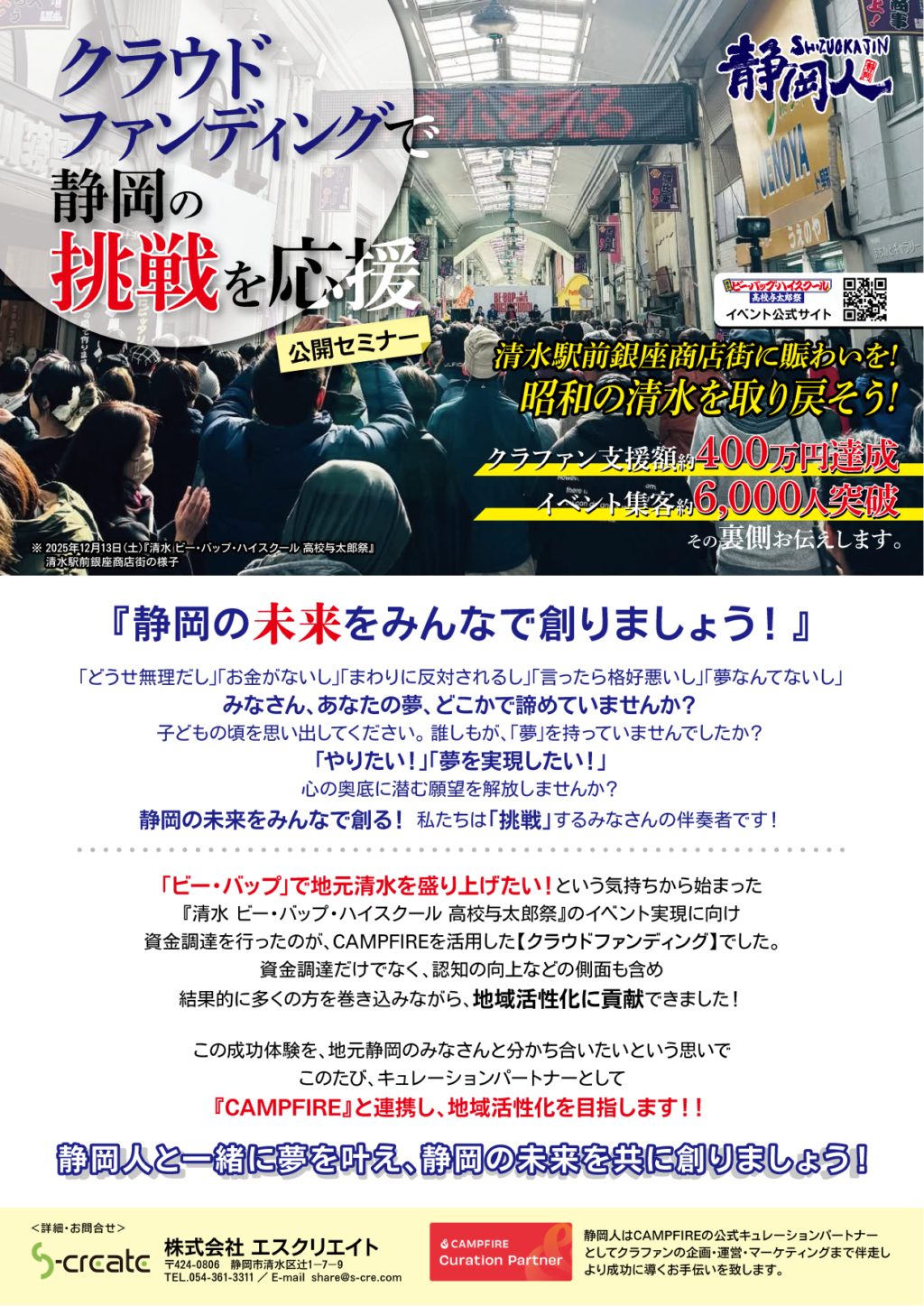 静岡の魅力を世界に届けることをミッションに掲げ、『静岡人』などのオリジナルブランドで、地元静岡の活性化を行う広告・マーケティング業の株式会社エスクリエイト(本社・静岡県静岡市清水区、代表:石川雅章)は、2026年1月26日(月)より、国内最大級の購入型クラウドファンディングサービス『CAMPFIRE』認定の公式キュレーションパートナーとなった。