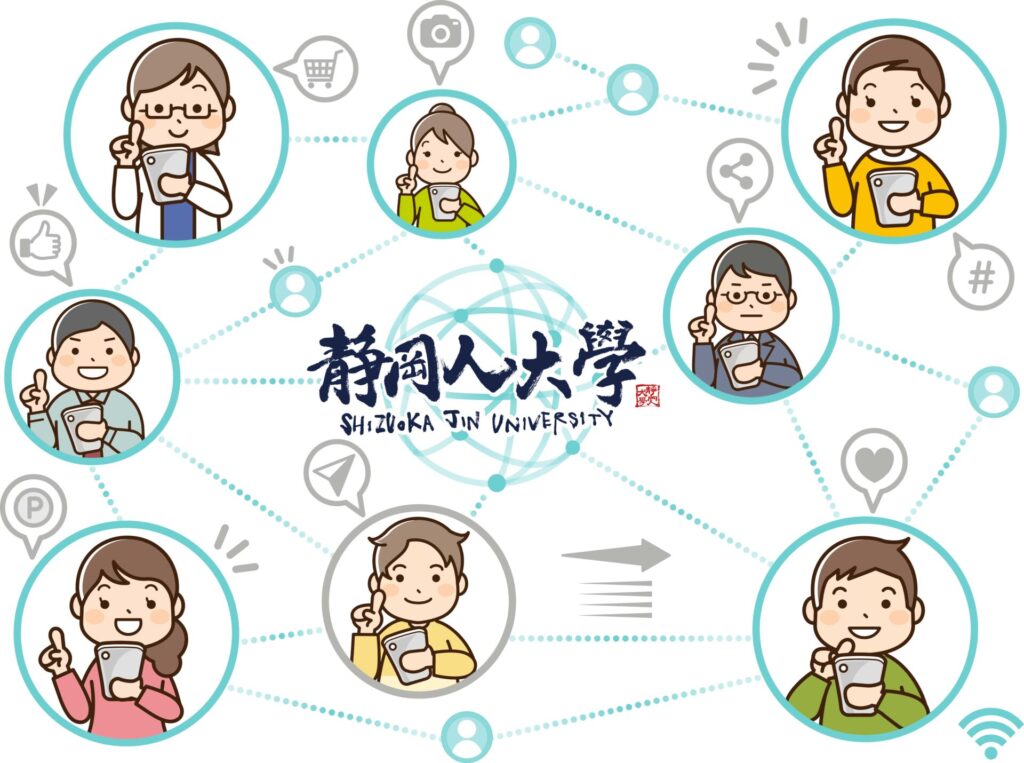 SNSやオンラインツールの活用、対面でのコミュニケーション、ローカルメディア「静岡人」を中心に、静岡の未来を一緒に創っていく大学です。